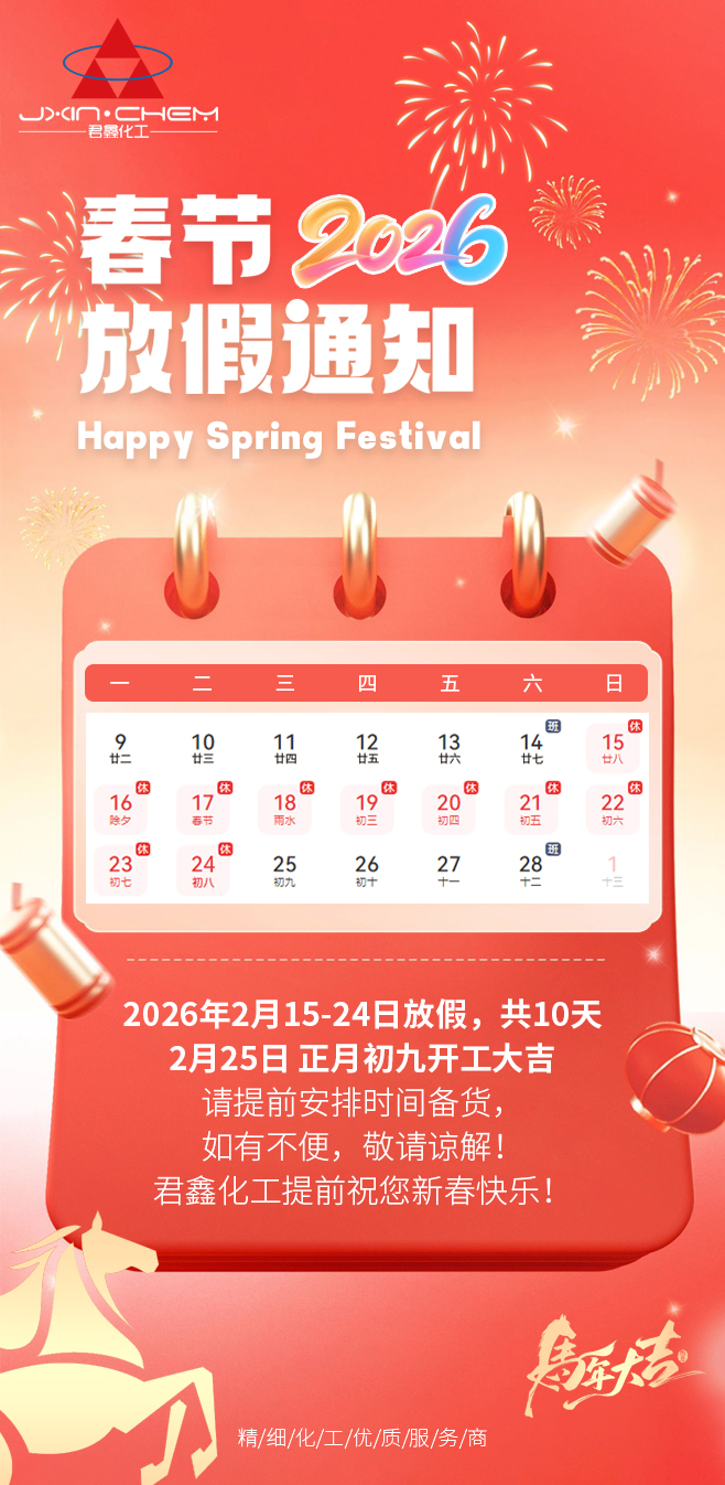 【春节放假通知】策马向春 万事长安,君鑫化工提前祝您新年好!
