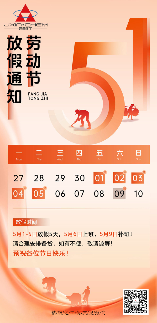 【五一放假通知】君鑫化工预祝您节日快乐!