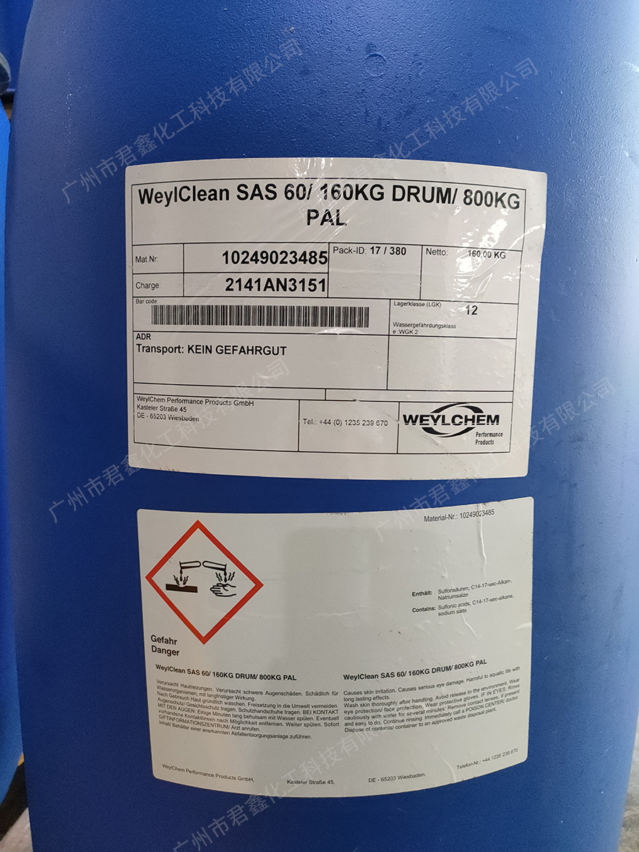 SAS60是一种优良的阴离子表面活性剂,渗透力可与JFC和快T相当,更在强碱、高温、氧化剂存在下,仍具有优越的渗透、乳化、脱脂、净洗能力。是耐高温、强碱的前处理剂的理想原料,广泛应用于棉、麻、毛、丝等天然纤维的脱脂、脱蜡、脱胶、脱油等,是印染一浴法前处理工艺的渗透剂和煮炼剂,印染分散剂、助染剂、化纤油剂和毛油添加剂的常用原料。